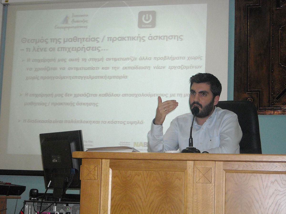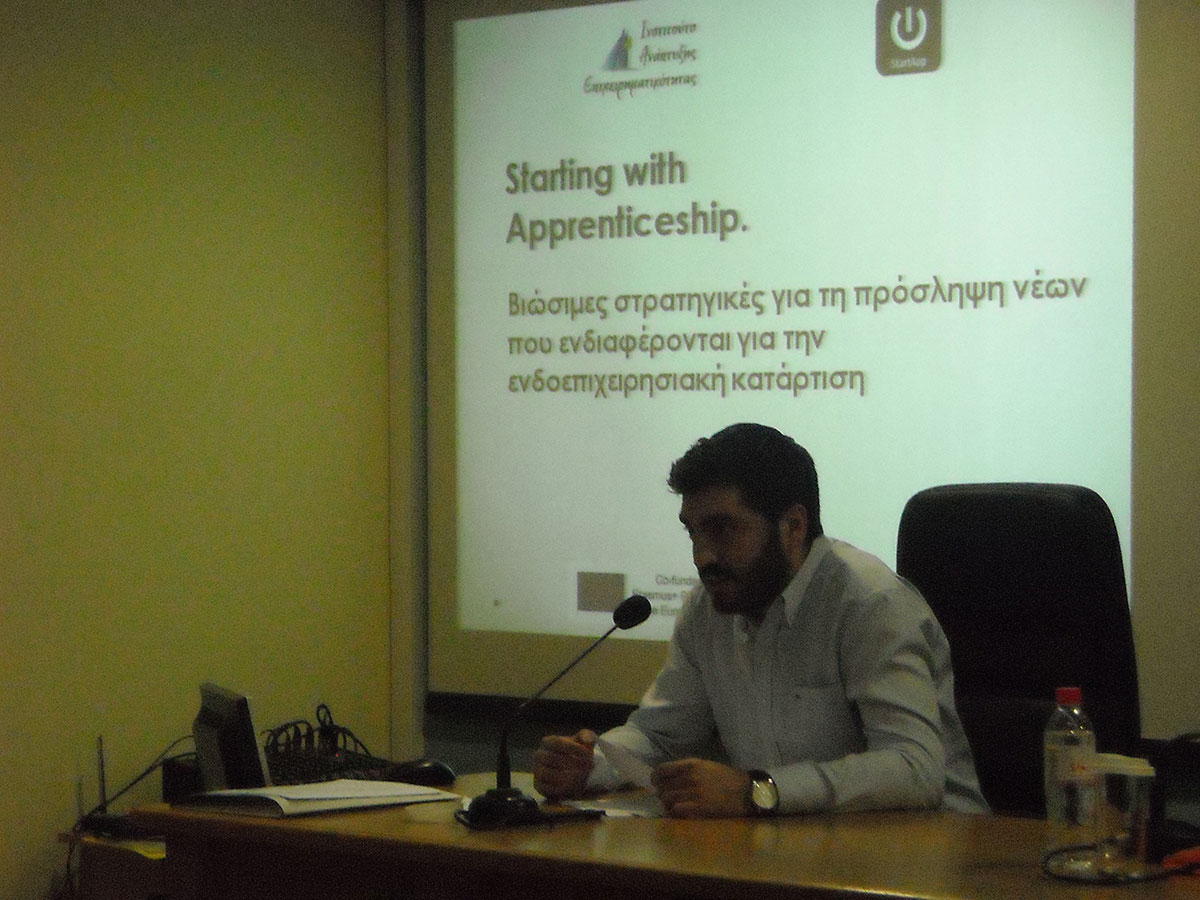 - «Βιώσιμες στρατηγικές για την πρόσληψη νέων που ενδιαφέρονται για την ενδοεπιχειρησιακή κατάρτιση», κ. Παναγιώτης Κουτούδης, Οικονομολόγος, συνεργάτης του Ινστιτούτου Ανάπτυξης Επιχειρηματικότητας.