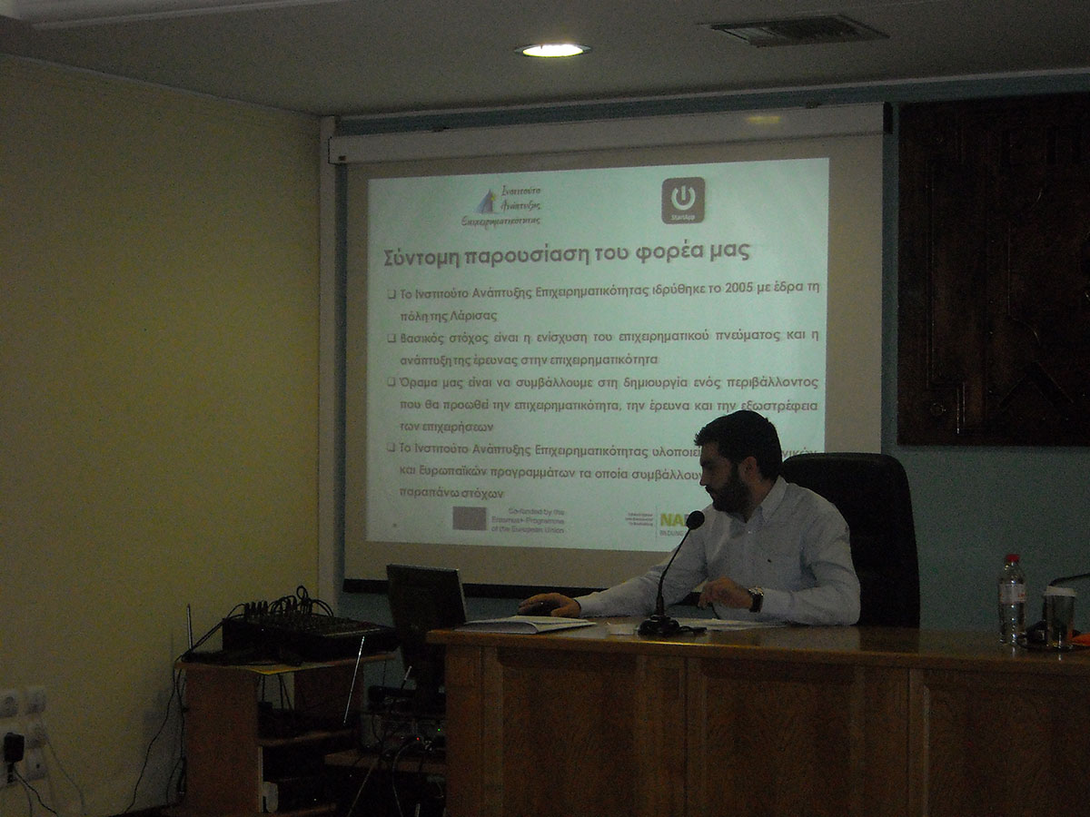 Το Ευρωπαϊκό έργο «STARTAPP:Βιώσιμες στρατηγικές για την πρόσληψη νέων που ενδιαφέρονται για την ενδοεπιχειρησιακή κατάρτιση» παρουσιάστηκε σε εργοδότες της ευρύτερης περιοχής της Λάρισας κατά τη διάρκεια ημερίδας που διοργάνωσε το Θεσσαλικό Κέντρο Ανάπτυξης, Καινοτομίας και Επιχειρηματικότητας του Επιμελητηρίου Λάρισας.