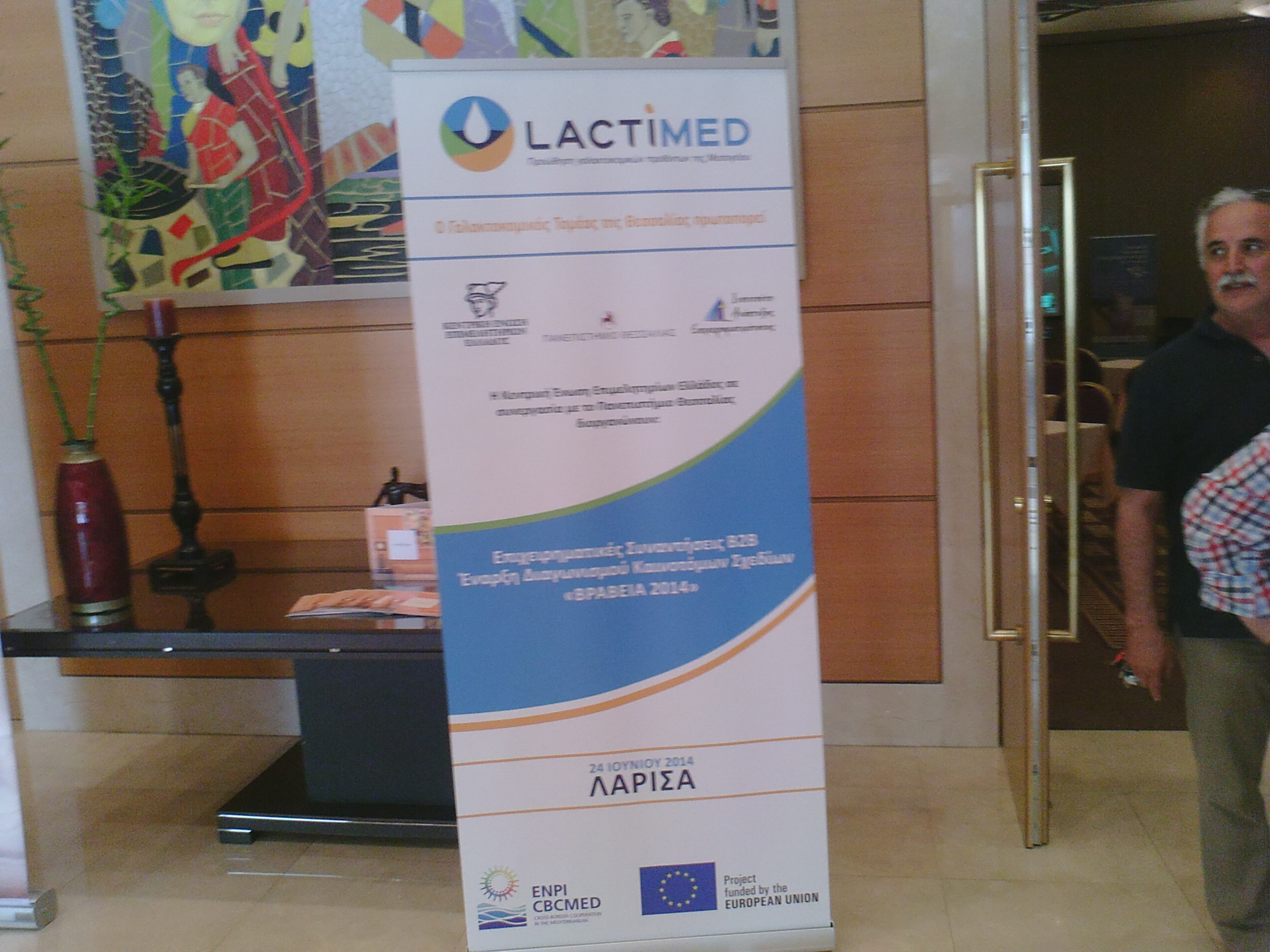 Με μεγάλη επιτυχία διεξήχθησαν την Τρίτη 24 Ιουνίου 2014 στο ξενοδοχείο Divani Palace της Λάρισας οι επιχειρηματικές συναντήσεις B2B με συμμετοχή Θεσσαλικών επιχειρήσεων της αλυσίδας γάλακτος και γαλακτοκομικών προϊόντων (Τυροκομικές μονάδες, Αγροτικοί & Κτηνοτροφικοί Συνεταιρισμοί) και επιχειρήσεων, από τη Θεσσαλία και όχι μόνο, της αγροτικής βιομηχανίας, παροχής υπηρεσιών (Σημεία Πώλησης, Συμβουλευτικές εταιρείες, Εταιρίες παρασκευής παραγωγικού εξοπλισμού κ.α.).Την ευθύνη διεξαγωγής της εκδήλωσης είχε η Κεντρική Ένωση Επιμελητηρίων Ελλάδος και το Πανεπιστήμιο Θεσσαλίας με την υποστήριξη του Ινστιτούτου Ανάπτυξης Επιχειρηματικότητας. Οι συναντήσεις πραγματοποιήθηκαν στο πλαίσιο του Προγράμματος LACTIMED το οποίο προβλέπει την εκπόνηση και την εφαρμογή ενός σχεδίου προώθησης των μεσογειακών γαλακτοκομικών προϊόντων. Στόχος του είναι η προώθηση συνεργασιών σε τοπικό και διεθνές επίπεδο, η οργάνωση δραστηριοτήτων και ο σχεδιασμός επενδύσεων ώστε να στηριχθούν τα γαλακτοκομικά προϊόντα µε θεσσαλικά χαρακτηριστικά και να δρομολογηθεί η έμπρακτη προώθηση τους, στην Ελλάδα και στο εξωτερικό.Παράλληλα, στην εκδήλωση, έγινε η παρουσίαση διαγωνισμού για την υλοποίηση καινοτόμων σχεδίων στον γαλακτοκομικό τομέα όπου επιχειρήσεις της Θεσσαλίας ενημερώθηκαν για τους όρους συμμετοχής και το χρηματικό έπαθλο όπου ανέρχεται στα 10.000€.